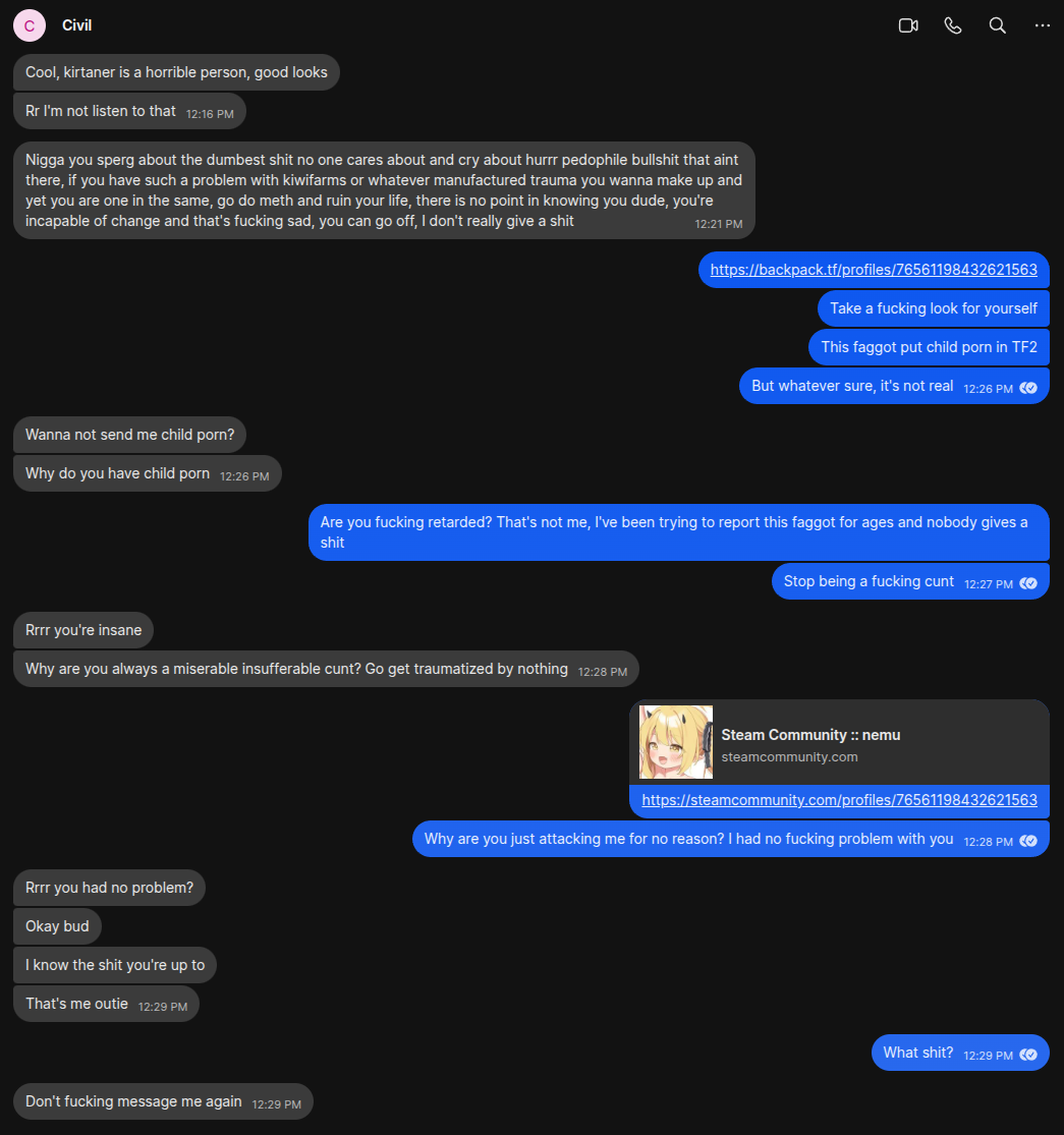 Civil believes this is all "pedophile bullshit that aint there" and "manufactured trauma"