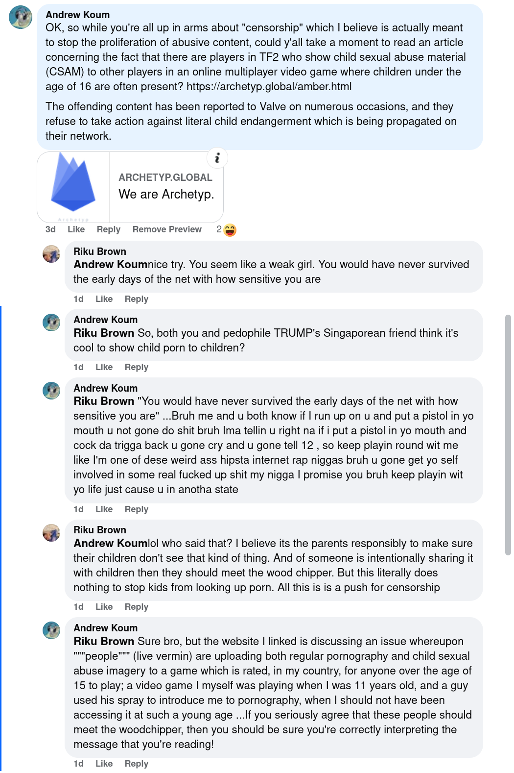 who openly possesses child porn items in a game rated for minors to play. Archetyp will not link to the offending, illegal content; we do not distribute CSAM.
