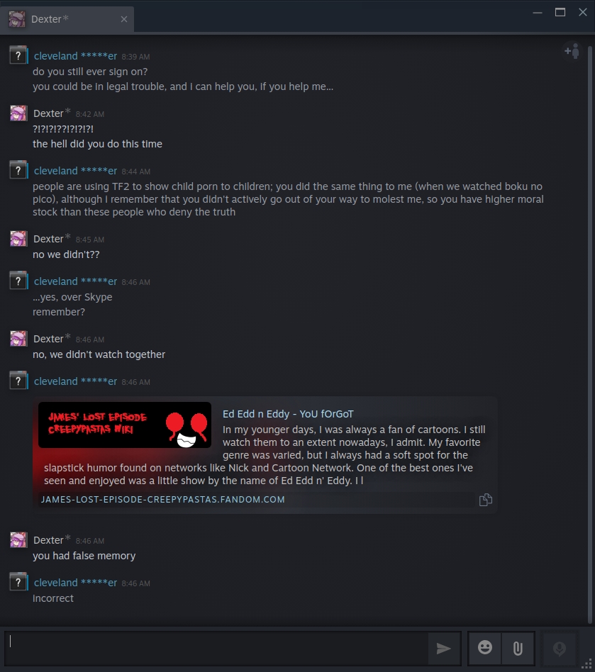 with me when I was only 11 years old, and also exposed me to pornography via Team Fortress 2.