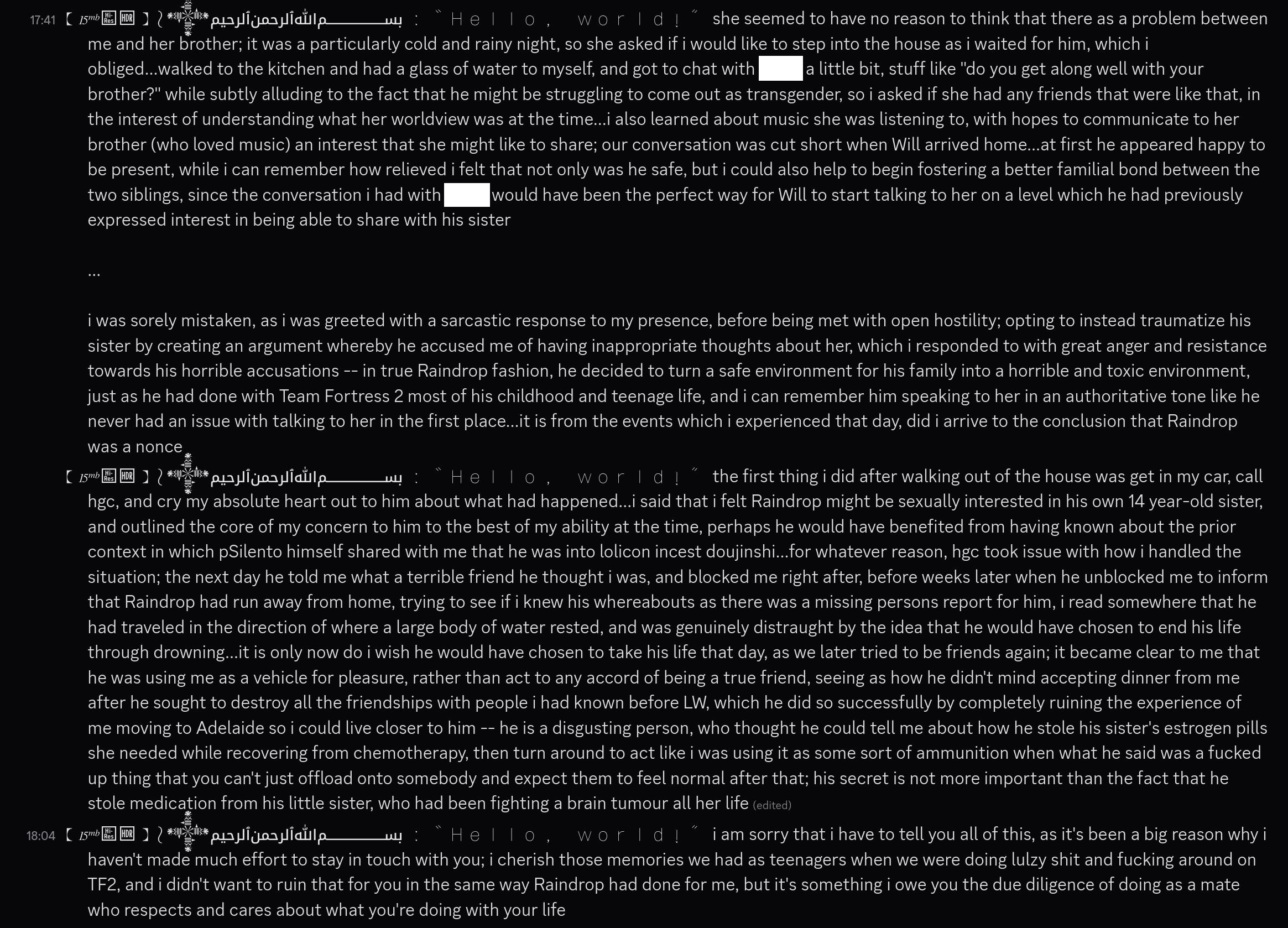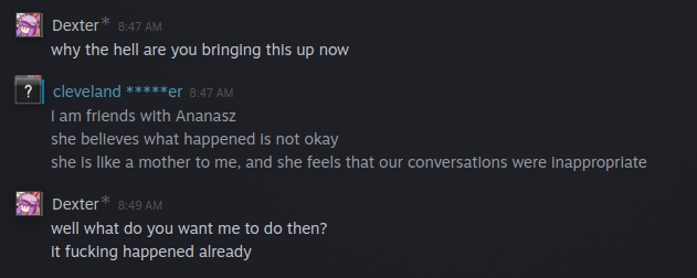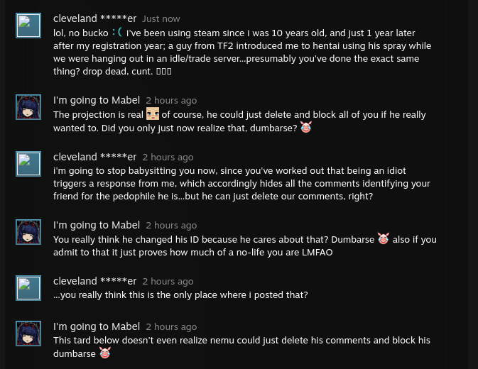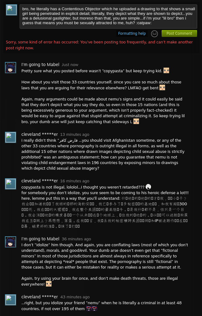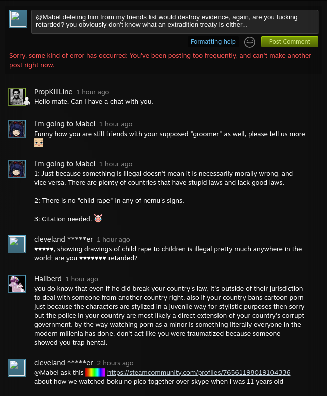 Most of these exchanges consist of "Mabel" defending his pedophile friend,
